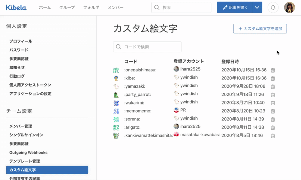 チーム内で利用できる絵文字を追加することができます。 追加された絵文字は、チーム内の記事やコメントの中でご利用いただけます。