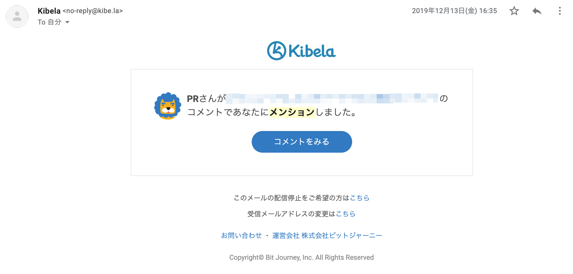 コメント 投稿した記事、もしくは自分がコメントした記事に新しいコメントがついたときに通知されます。 いいね! 投稿した記事やコメントにいいね!がついたときに通知されます。 メンション 記事やコメント内で自分が言及されたときに通知されます。 変更の通知を受け取る設定をした記事 変更の通知を受け取る設定をした記事 設定した変更があったときに通知されます。 Kibelaのお知らせ