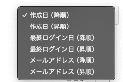 また、画面右にあるドロップダウンから、ユーザーの作成日や最終ログイン日、メールアドレスごとに並び替えることができ、各ユーザー毎に最終ログイン日や追加日も確認いただけます。