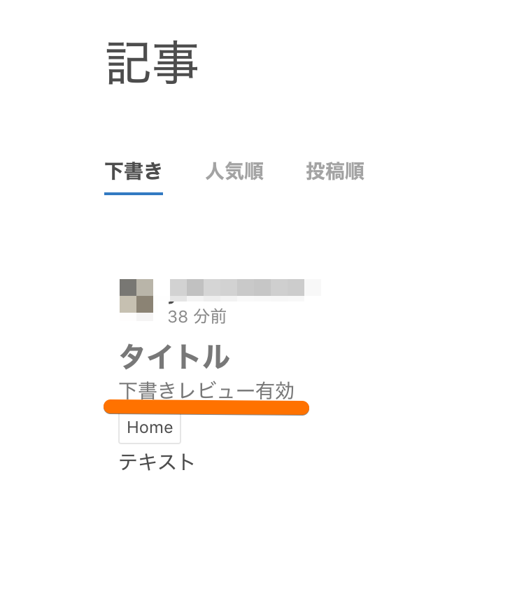 レビューが有効の記事は、下書き一覧に「下書きレビュー有効」と表示されます。