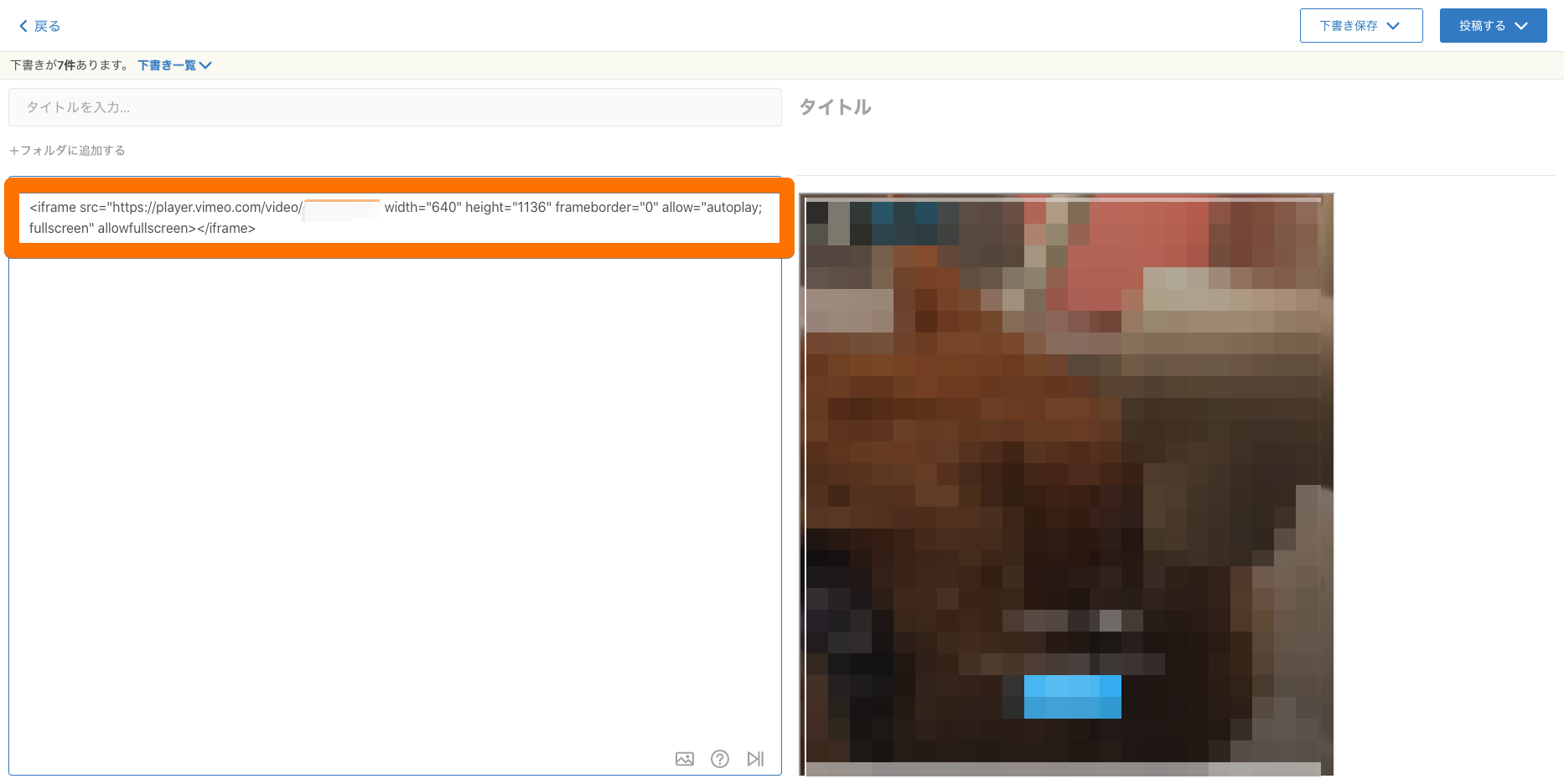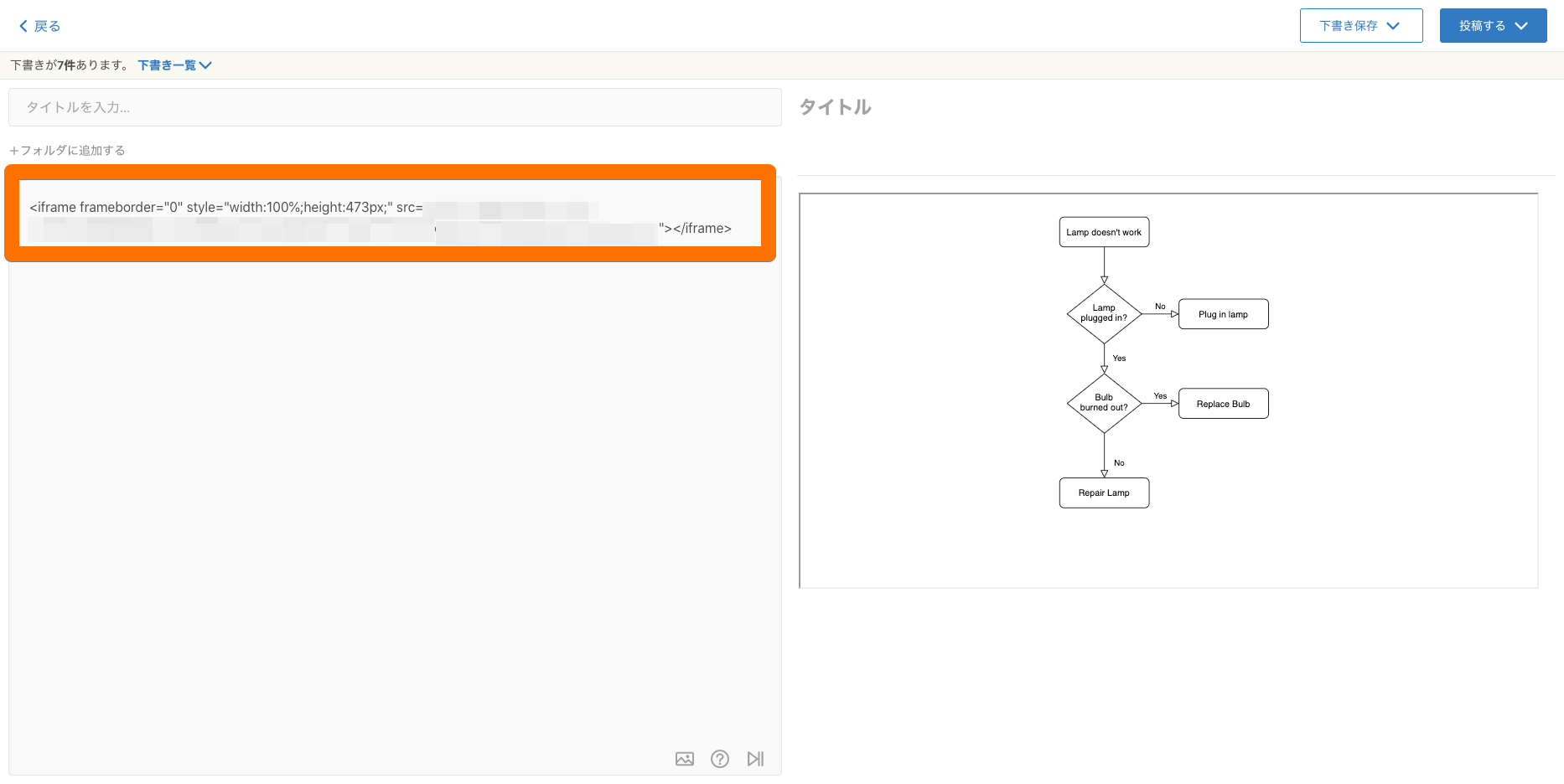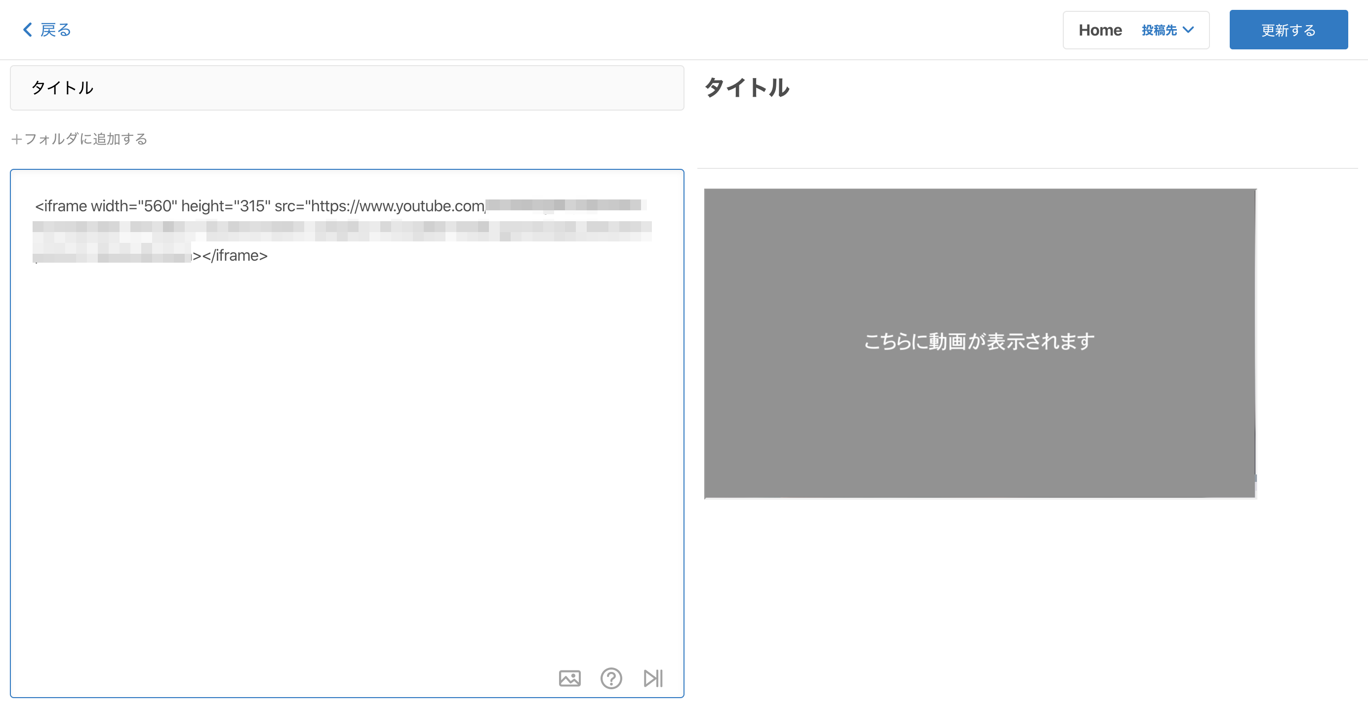 <iframe>タグの埋め込みはお手数ですがマークダウンエディタの画面にてお願い致します。