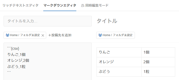 2025/10/01 ExcelやGoogleスプレッドシートから表を貼り付ける ExcelやGoogleスプレッドシートの表は、簡単に貼り付けることが可能です。 次のような表をコピーし、記事編集画面にてペーストすると CSV形式で貼り付けられ表として展開されます。 ExcelやGoogleスプレッドシートで作業し、結果のみをKibelaに記録する場合などにご活用ください。 ※注意 結合されたセルはKibela 上では反映されません。